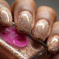 The Artist collection consists of gorgeous jelly nail polishes densely packed with a full coverage super holographic micro glitters. Although these do dry a little flatter than most micro-glitter polishes, it still is slightly textured so a top coat is recommended if you want a smoother long-lasting finish. Easily removable with acetone.