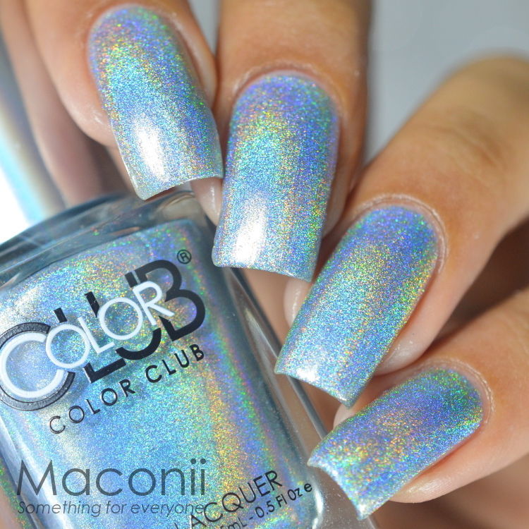 Color Club's Blue Heaven from the Halo Hues collection is a light blue linear holographic polish. Wiggle your fingers under direct sunlight to see this amazing holo shine!