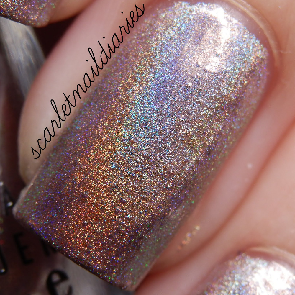 Color Club's Cherubic from the Halo Hues collection is a light tan-nude linear nail polish. Wiggle your fingers under direct sunlight to see this amazing holo shine!