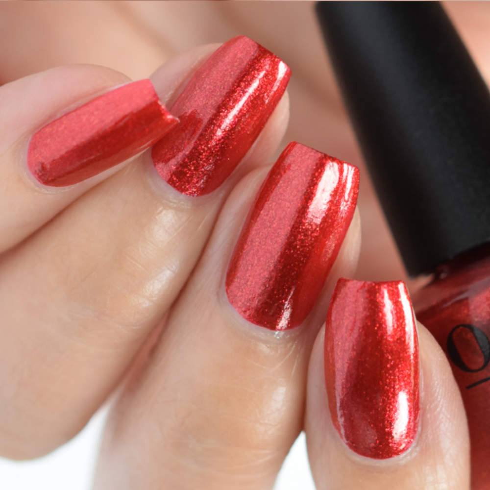 - H025 Kiss My Aries - Fiery holiday red shimmer. Opaque.
