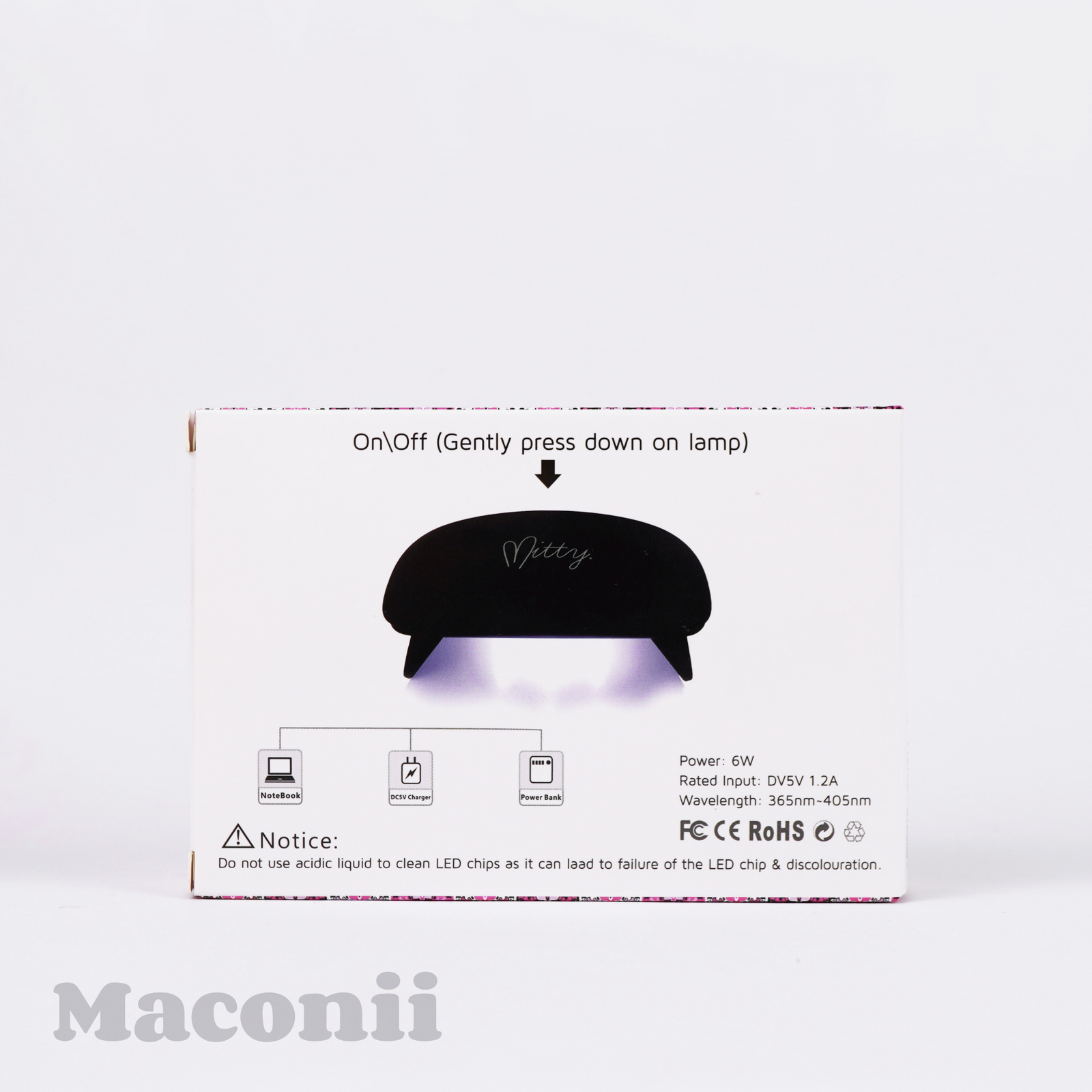 Mitty 6W LED Nail Lamp is the answer to a portable manicure. Folds up for easy travel. It's small enough to fit into the palm of your hand, but powerful enough to completely cure gel polishes. This nail lamp is 100% LED so it's super safe to use.