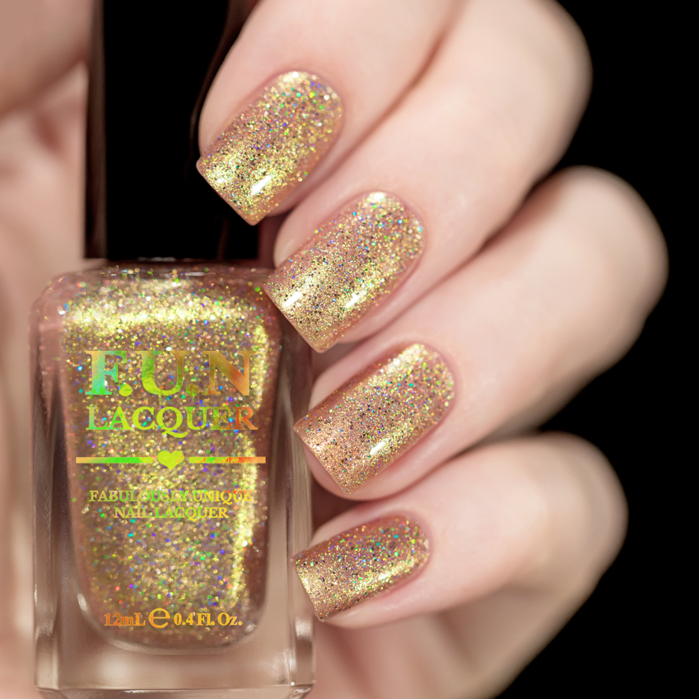 F.U.N Lacquer's 2020 Spring Summer collection consists of shifting shimmers and their (H) versions that are added with a precise amount of holographic glitter. Images show 2-3 coats of the nail polish with F.U.N Lacquer's Be On Top Quick Dry Top Coat.