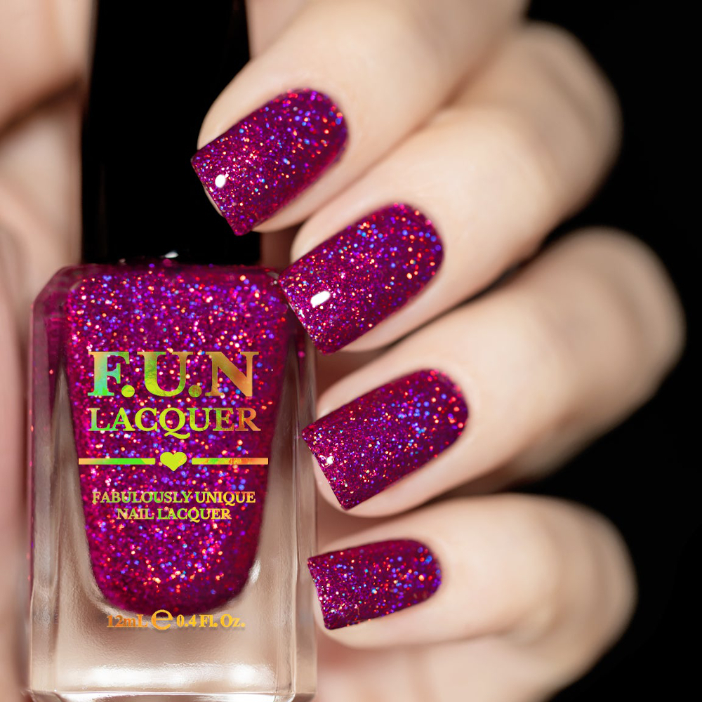 - Playful - 100% pure fuchsia holographic glitter. Similar to F.U.N Lacquer's Love Potion but with larger glitters.