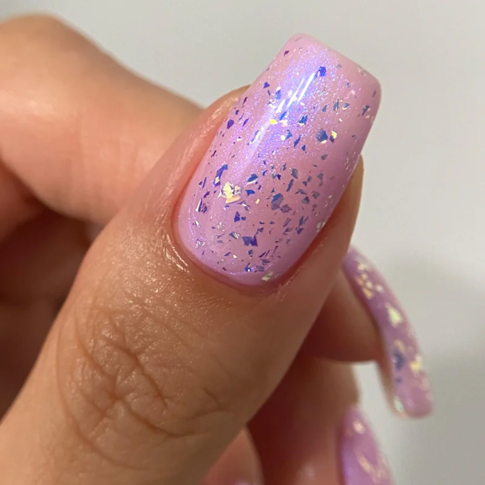 Artificial Sun is not here to illuminate, it’s here to pretend. The flakes shift and glint like warmth, but offer no heat. Wear it alone for a beautiful dreamy look. Layer it over any shade to create the illusion of glow and add a “sunny effect” to any shade.