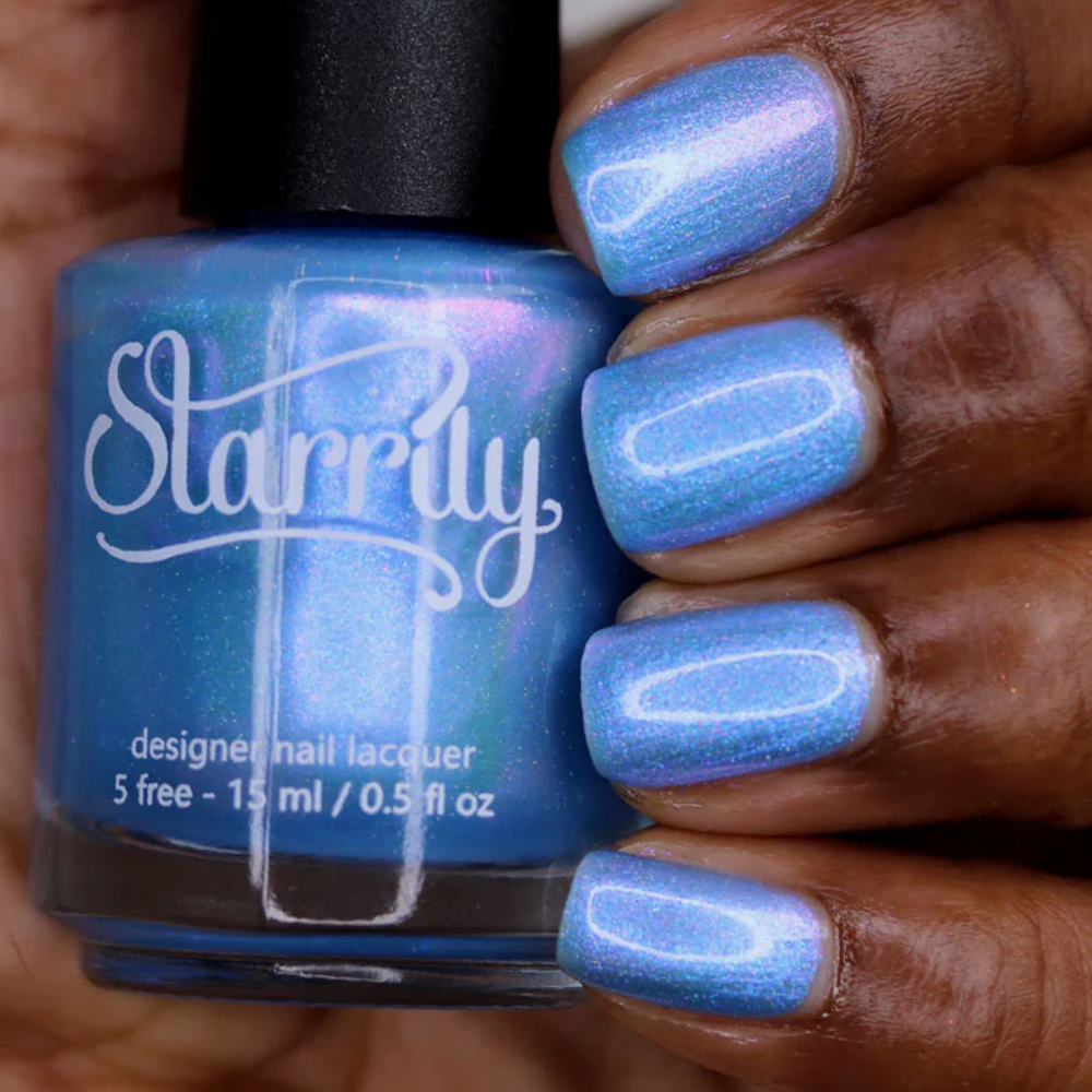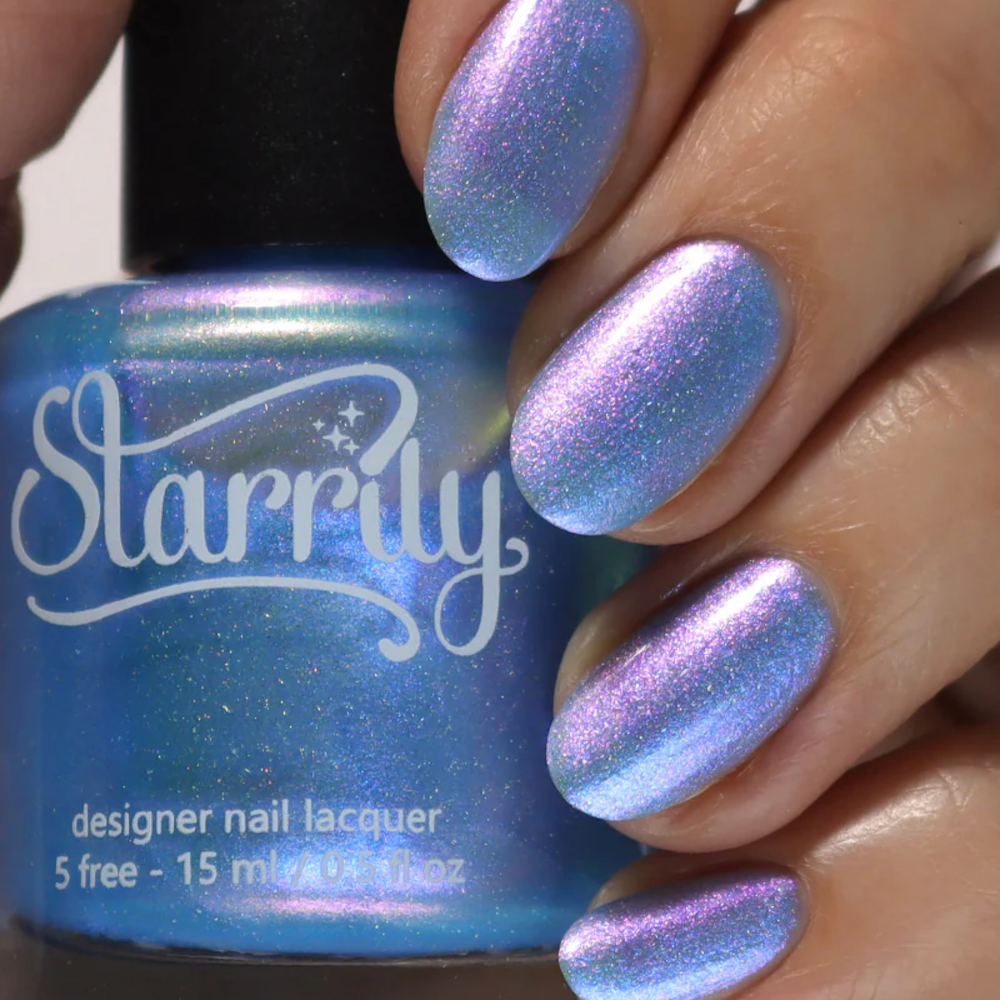 - Magical blue to purple color shifting shimmer with a sparse holographic sparkle.