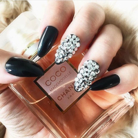 Design: Dark Matter - Black nails with silver faux diamond accents