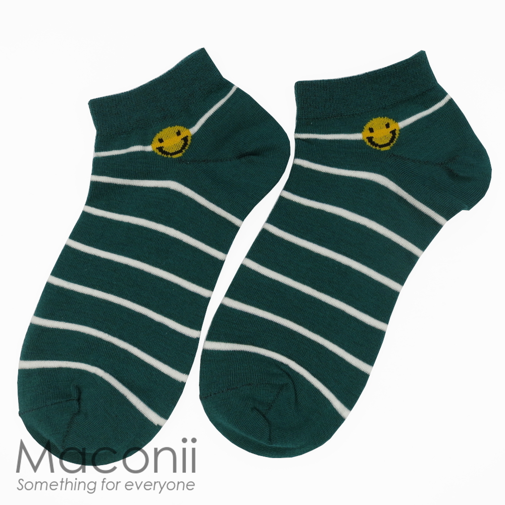 A simple stripe sock with a cute smile face emoji on the sides to add a bit of happiness to your day. There are five colours to choose from:
