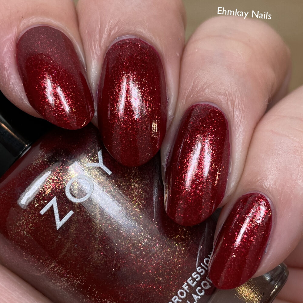 - ZP1249 Axelle - cranberry red base filled with red and gold metallic flecked shimmer